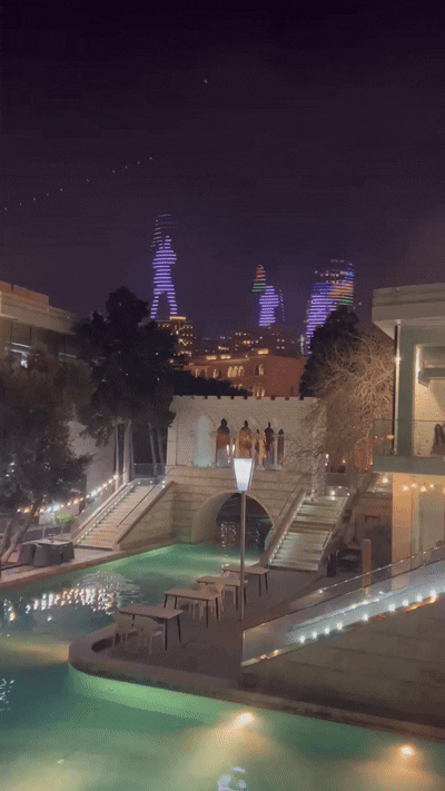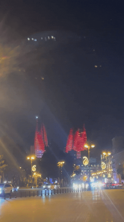 Fine della giornata, si torna in hotel, doccia al volo e si esce per cena e per una passeggiata. Il lungo mare è favoloso. A est dominano i nuovi grattacieli tutti illuminati di Baku, a ovest le Flame Tower ne fanno da padrona. 3 torri a forma di fiamma che la notte proiettano inni all’Azerbaijan. Lo spettacolo è dirompente. Difficile togliere gli occhi di dosso. Piante coperte da serre e statue di metallo si alternano sul lungomare di Baku.